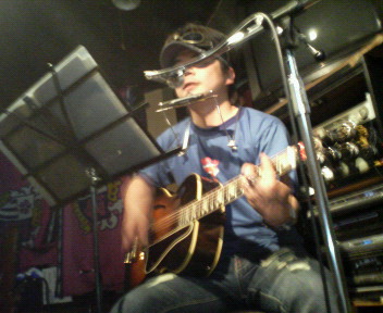 で、カホンにマスター。ハープにツツミヤスロー。で、リードギターにワシ。